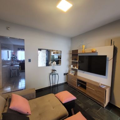 Casa Térrea com 3 Dormitórios sendo uma Suíte, Sala, Cozinha com Armários, Área de Serviço, 1 Vaga de garagem Coberta.