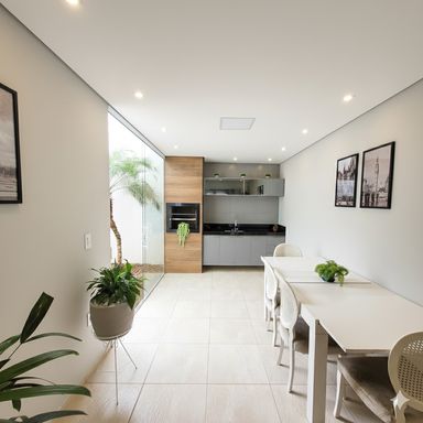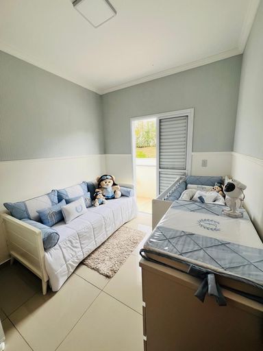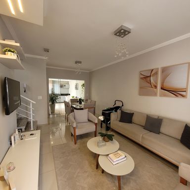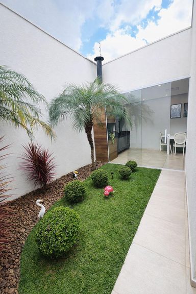 Conta ainda com Espaço Gourmet coberto com Churrasqueira, ótimo espaço de quintal gramado e paisagismo, corredor lateral independente, garantindo total privacidade, além de 2 vagas de garagem.