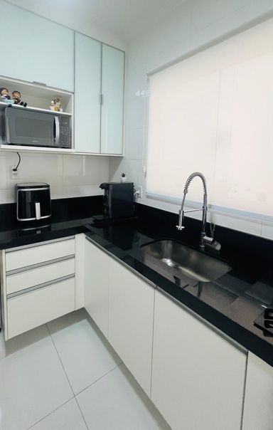 Possui 3 dormitórios, sendo 1 Suíte com Armários, Sala para 2 Ambientes com piso em porcelanato, Lavabo com acabamento em Madeira e Cozinha planejada.