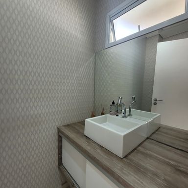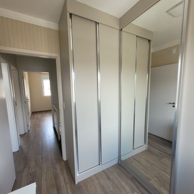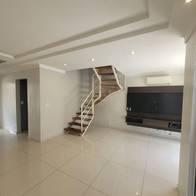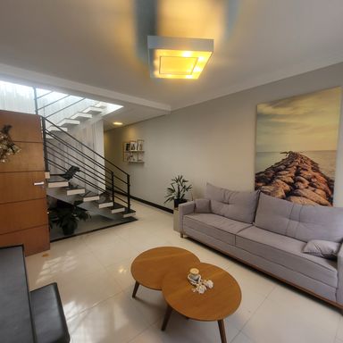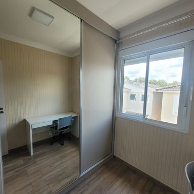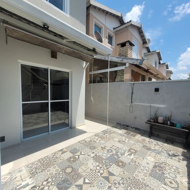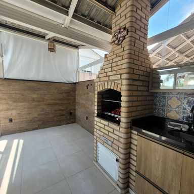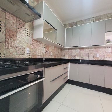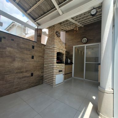 Sobrado com 3 Dormitórios, sendo 1 Suíte, com Armários, Sala 2 Ambientes com Painel de TV, Lavabo, Cozinha com Armários e Forno, Espaço Gourmet com Churrasqueira, Quintal, 2 Vagas de Garagem. Ar condicionado nos quartos e sala.