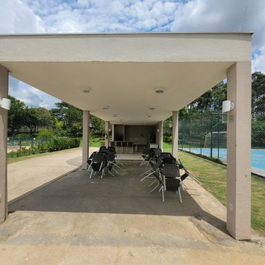 Áreas sociais: piscina de adulto e criança, Quadra de esportes, academia, 2 quiosques para churrasco, playground, pista de caminhada, lago, mercadinho e espaço para pet.